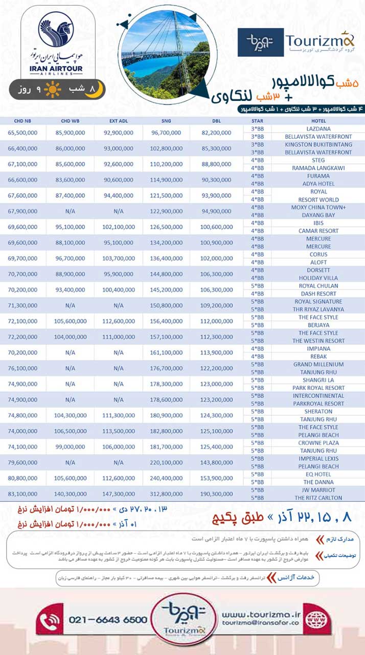 جهت ملاحظه نرخ ها و پکیج تور کوالالامپور لنکاوی روی لیست کلیک کنید