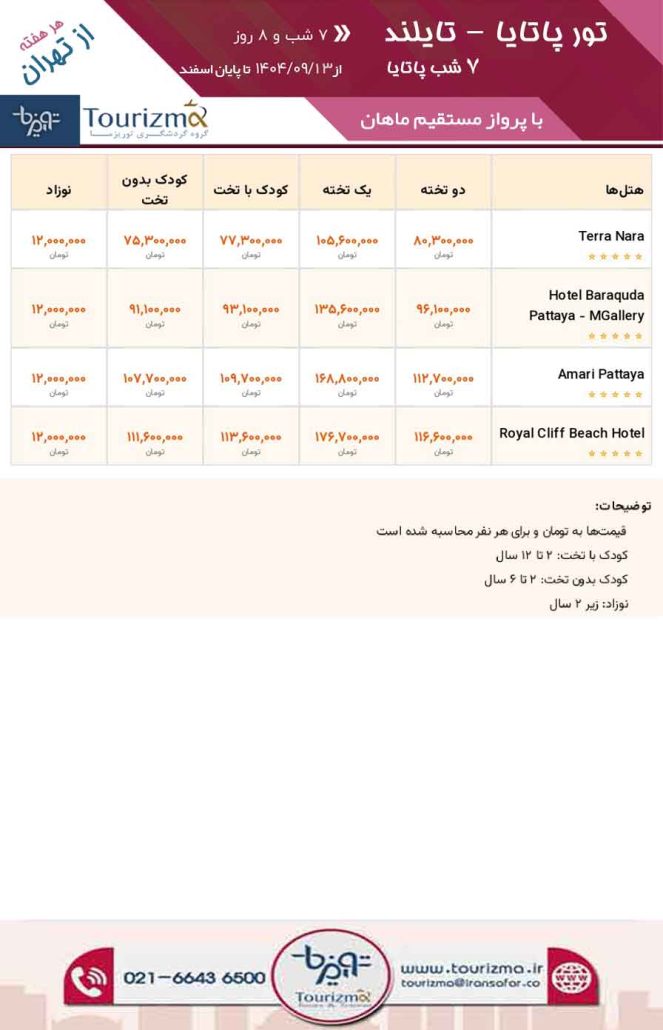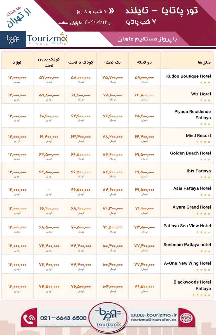 اطلاعات کلی تور پاتایا ۷ شب و ۸ روز